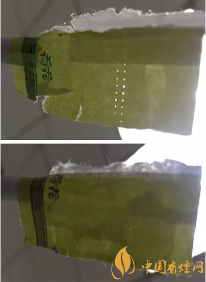 假煙接裝紙雖然也有2排打孔,但孔洞較小且未打透,孔點(diǎn)排列不規(guī)則。