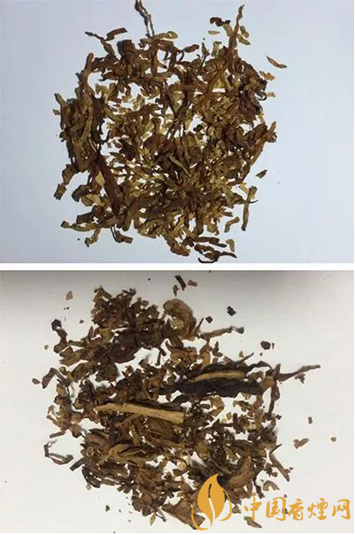 真品卷煙煙絲呈金黃色、絲條狀,煙絲結(jié)構(gòu)為純?nèi)~絲,香氣醇厚;