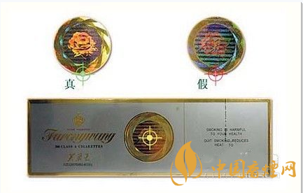 (2)看防偽標(biāo)記:條盒的正面芙蓉花防偽標(biāo)記,真煙的印刷在同一側(cè)面看到的只有一個圖樣;假煙的印刷在同一側(cè)面看到是幾個在一起的圖樣。