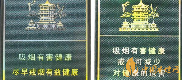 盒包正面包裝膜材質(zhì)及印刷對比:真品卷煙盒包裝膜材質(zhì)光滑,“吸煙有害健康”清晰無毛刺,黃鶴樓圖案套色清晰。假煙盒包裝膜材質(zhì)不平整有皺褶,“吸煙有害健康”文字邊緣有毛刺,黃鶴樓圖案套色不清晰。