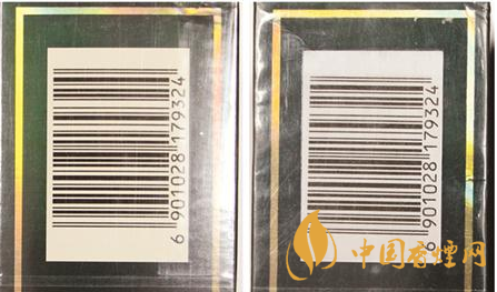 煙用包裝膜材質(zhì)及條形碼對比:真品卷煙條包裝膜材質(zhì)光滑,均勻無皺褶,條形碼區(qū)域呈淡黃色,套色均勻清楚。假煙條包裝膜材質(zhì)粗糙,有不均勻皺褶,條形碼區(qū)域為白色,套色邊緣放大后模糊不清。