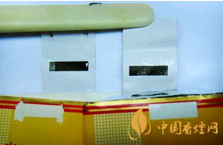 一、小盒商標(biāo)材質(zhì)在紫外熒光燈照射下差異比對(duì):真品小盒商標(biāo)材質(zhì)均未添加任何熒光增白劑;假煙則大量添加熒光增白劑。熒光增白劑又稱熒光劑,是一種可吸收光線或紫外線而反射藍(lán)白磷光的化學(xué)染料,人體過量接觸就會(huì)成為潛在的致癌因素。在紫外熒光燈下,商標(biāo)材質(zhì)與真品比對(duì)存在明顯差異。