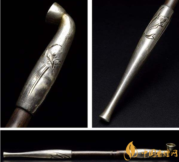 日本煙管的出于使用的耐久性考慮,煙嘴和煙鍋的部分多選用結(jié)實(shí)耐高溫的金屬——金、銀、銅、鐵、錫以及一些合金。在江戶時(shí)代,日本在金屬雕刻和電鍍的工藝上頗有建樹,因此煙管金具的裝飾和雕刻大都非常精美。