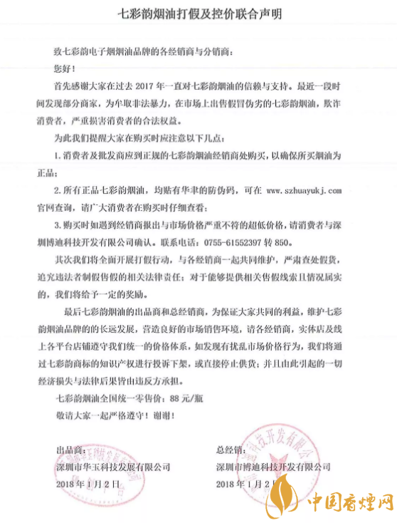 七彩韻煙油打假及控價聯(lián)合聲明