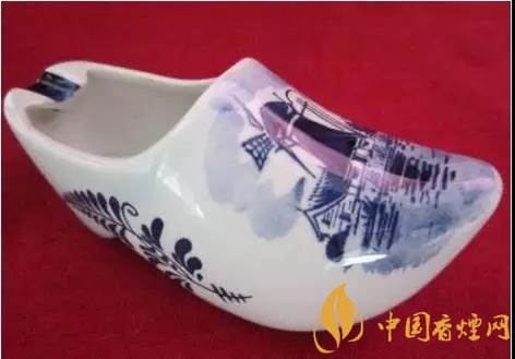 這款工藝煙灰缸是來自荷蘭的這款煙灰缸,呈尖頭木屐形,底色為白色,除少量文字與邊紋外,圖案皆以藍(lán)色繪之。這款高檔煙灰缸圖片鞋身左右前后都繪有對(duì)稱的三葉草圖案;鞋面繪有荷蘭風(fēng)車、村舍及水田灌木圖案;此外,鞋頭還用淡色繪以藍(lán)天白云,籠罩上空。而鞋口靠近鞋跟方向的邊沿處,設(shè)計(jì)了三個(gè)凹槽,方便多人吸煙時(shí)使用。總而言之,是一款顏值與實(shí)用并存的煙灰缸無疑了。